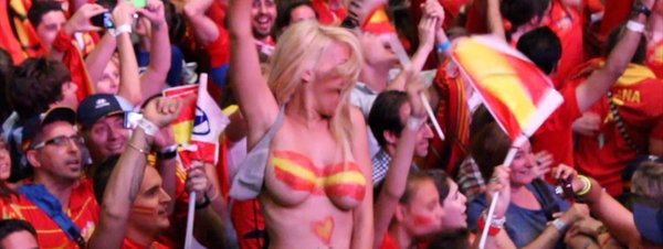Al igual que hiciera Larissa Riquelme, la modelo paraguaya que saltó a la fama tras celebrar con la hinchada paraguaya con un celular en el escote y muy poca ropa, una stripper española se volvió una celebridad tras mostrar sus pechos en los festejos de España por la Eurocopa.