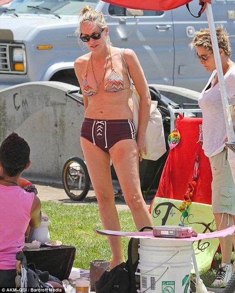 La actriz, ubicada en el pedestal de "sex symbol" desde que en los noventa cautivó a todos con su actuación en "Bajos instintos", está descansando en California y allí la encontraron los omnipresentes paparazzi.