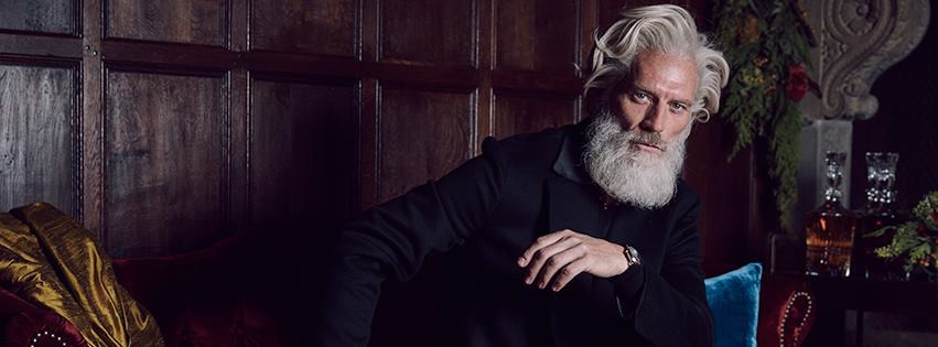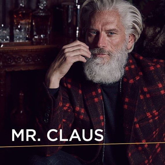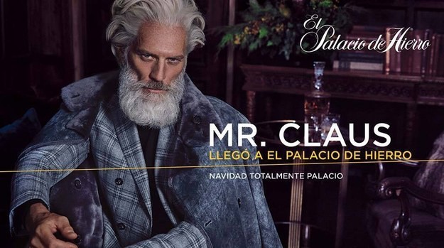 Aunque el modelo porta efectivamente una larga barba blanca, sus puntiagudos pómulos y su sofisticado abrigo color vino tinto se alejan mucho del alegre y gordito Santa, enfundado en su traje rojo y esquimal.