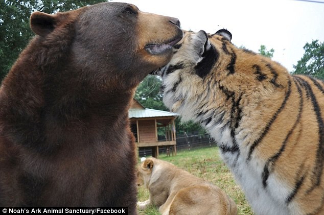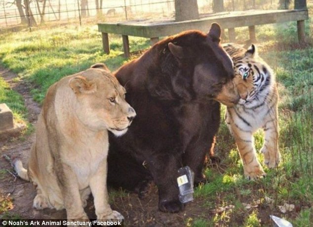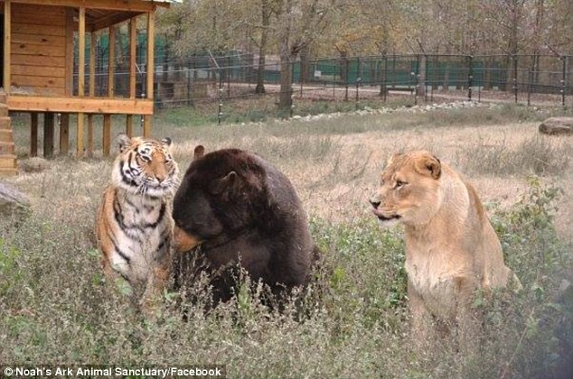 Dado lo diverso de sus hábitats originales, raramente el oso pardo norteamericano, el tigre de Bengala y el león africano tendrían oportunidad de encontrarse en la naturaleza. Pero si ello ocurriera, difícilmente se llevarían tan bien como estos tres hermanos unidos por azarosas circunstancias.