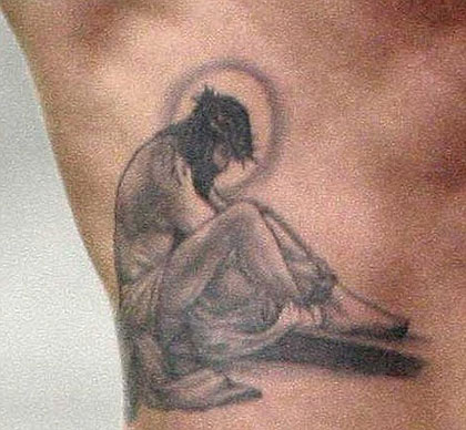 En blanco y negro, sobre el costado derecho de su torso, Beckham se tatuó una imagen de Jesús inspirada en la obra "The Man Of Sorrows" del artista Matthew R. Brooks. La primera revelación pública de este tattoo llegó en el partido que disputó con el Milan ante Juventus, en Turín, cuando al culminar el match se quitó la camiseta.